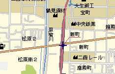 外環状線新町陸橋北交差点、西側に並ぶ貸工場 信号側端緑色の工場です。 壁を緑色に塗っているのですぐに分かります! ※地図をクリックすると、 拡大図・縮小図が見られます。 |